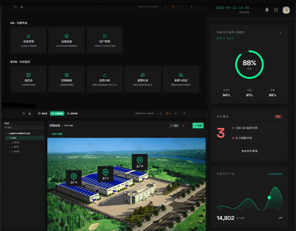 结合 IoT 传感器数据,为制造企业提供设备状态监测与预警系统。通过可视化仪表盘展示实时生产曲线、故障预警及能耗分析,助力工厂实现从“经验驱动”向“数据驱动”的转型。